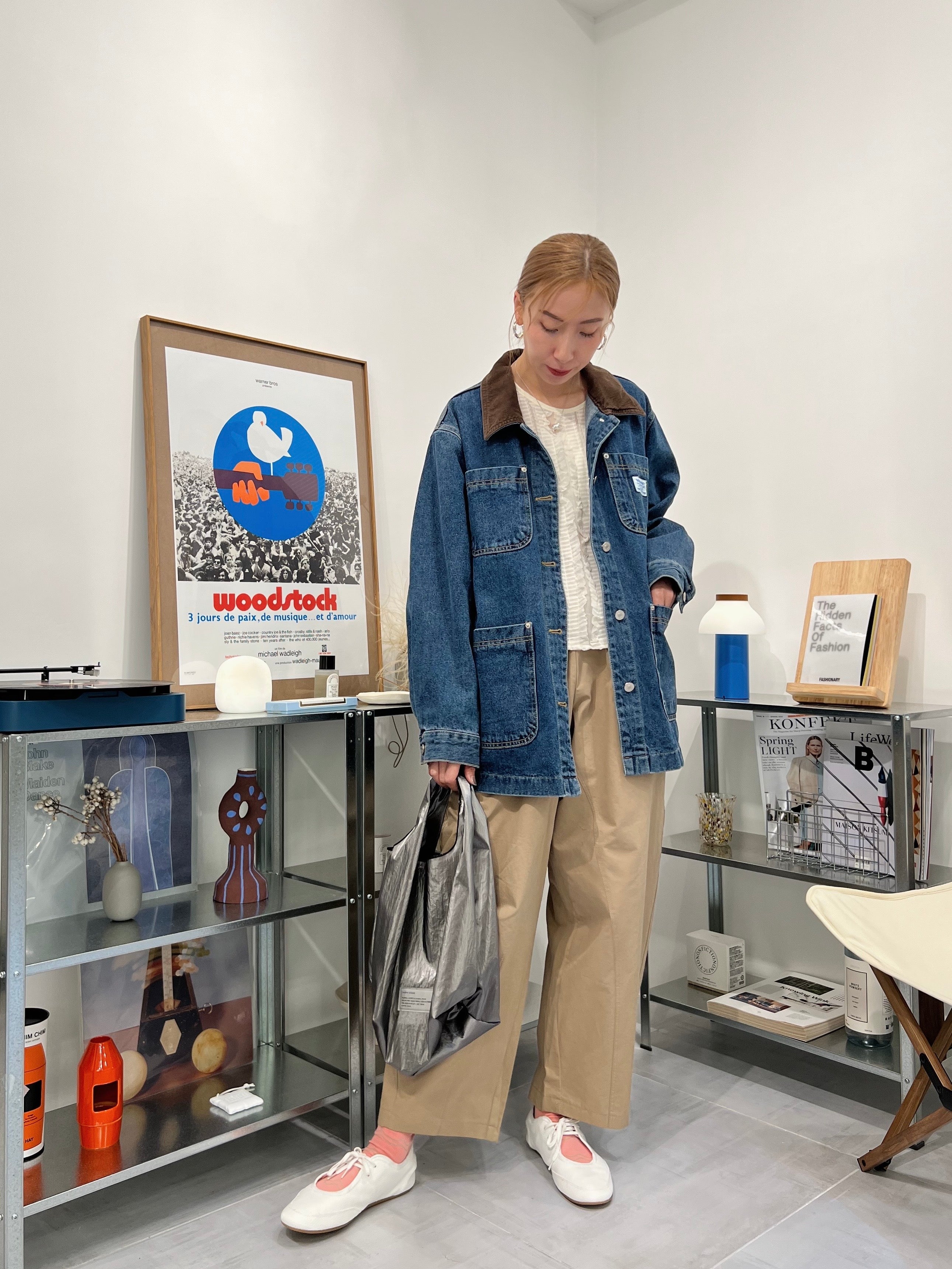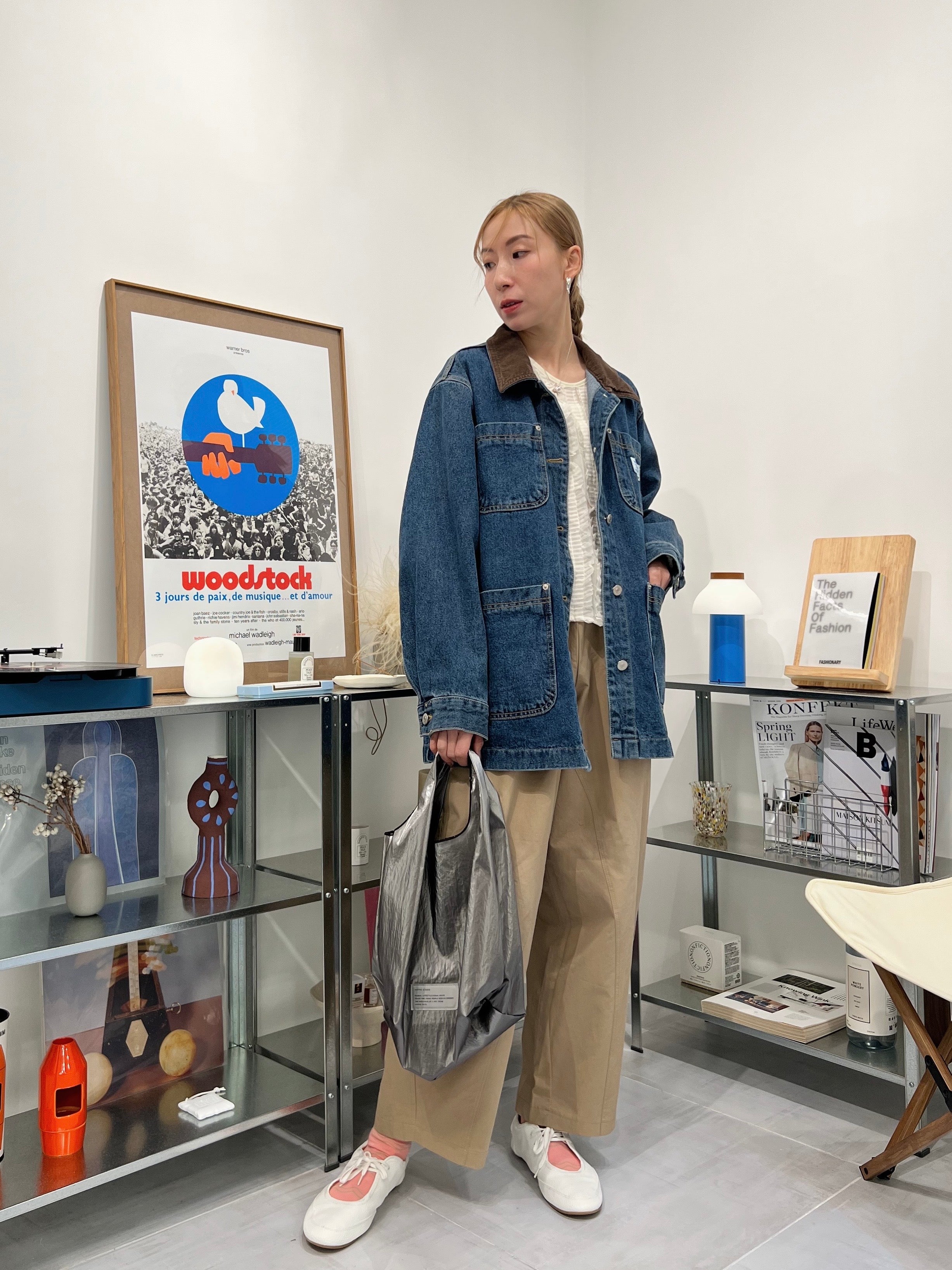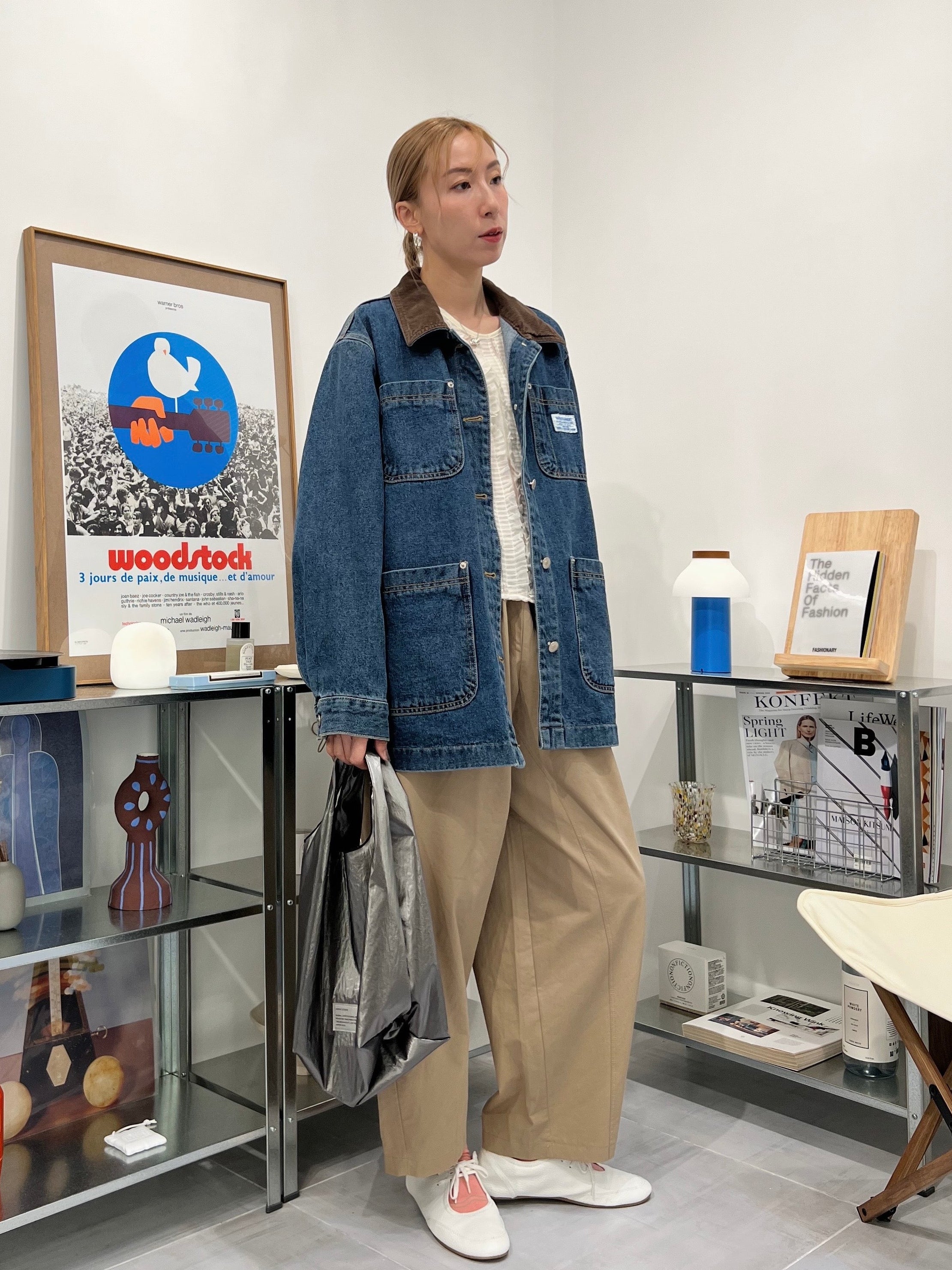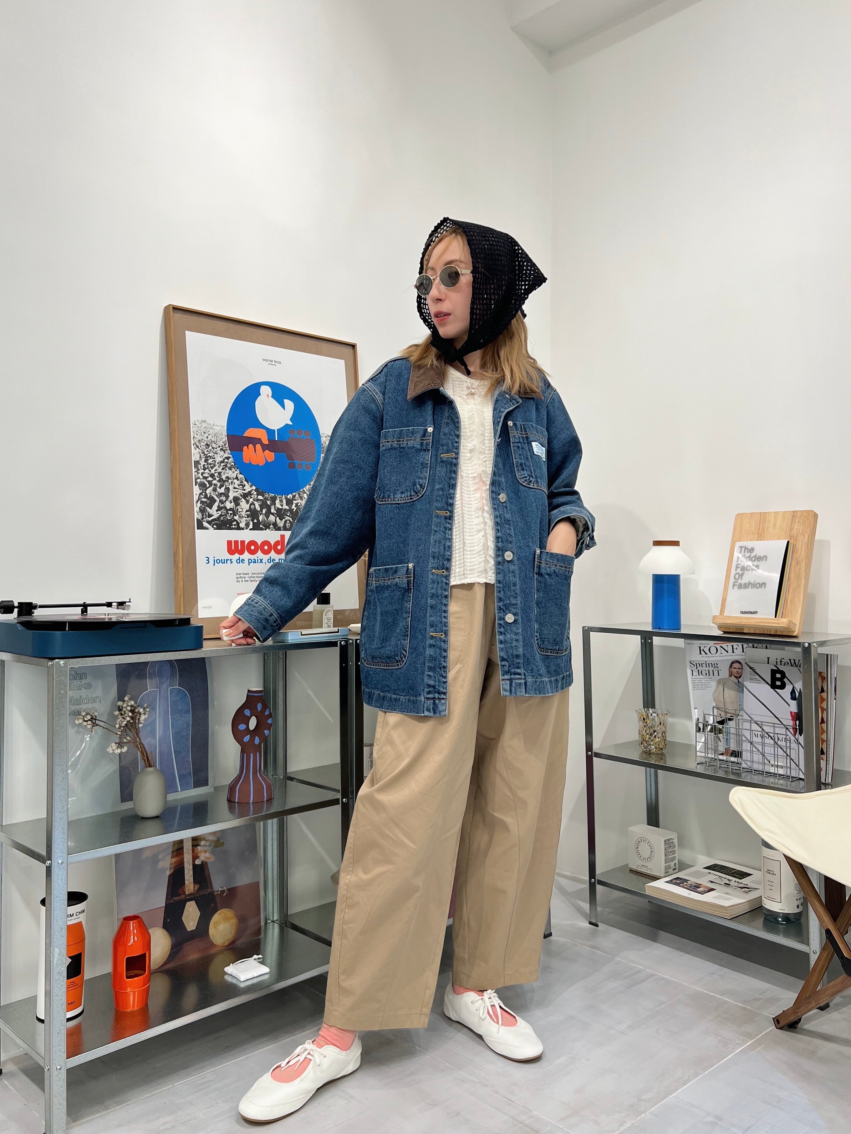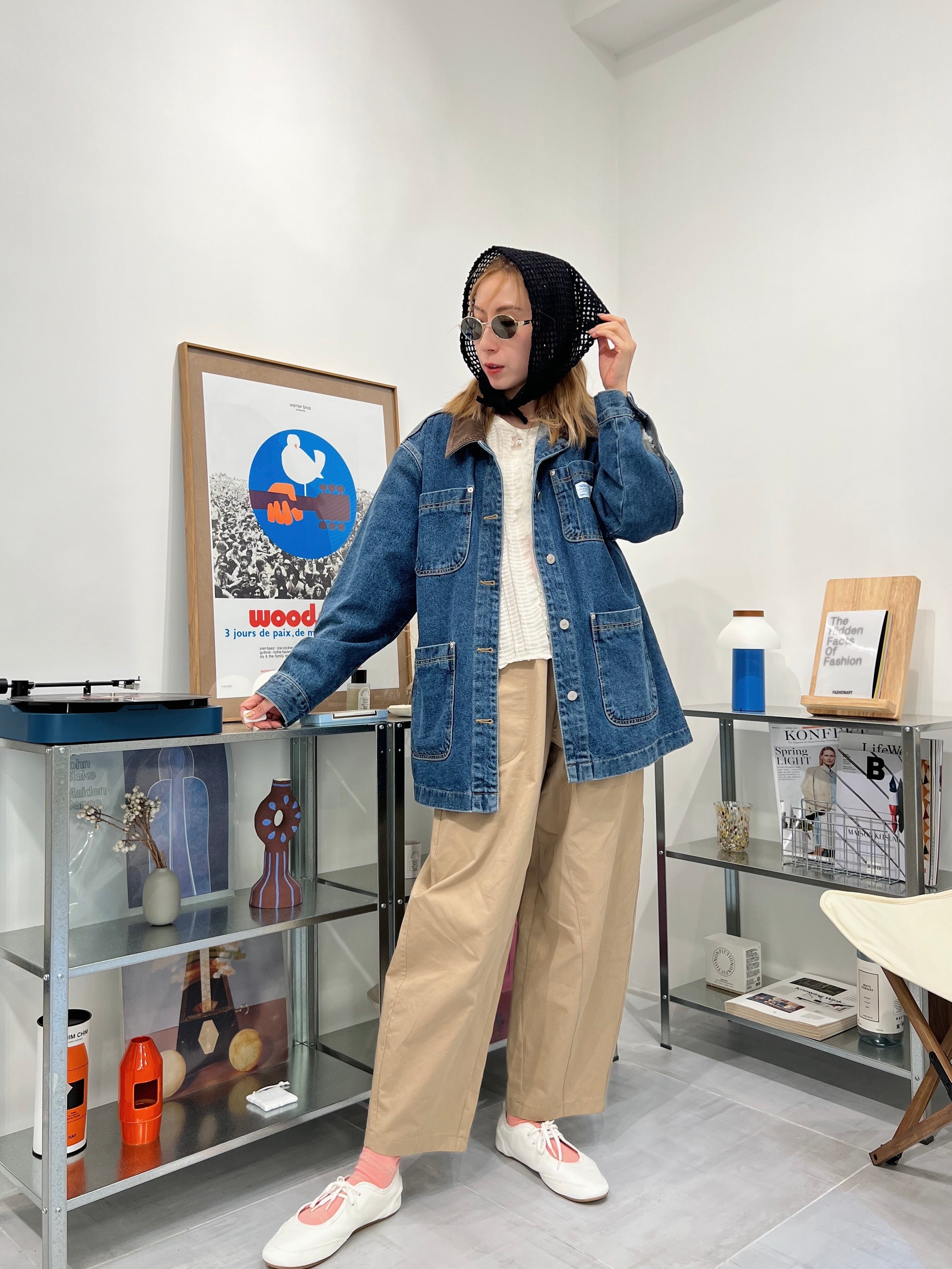 燈心絨領牛仔褸/藍