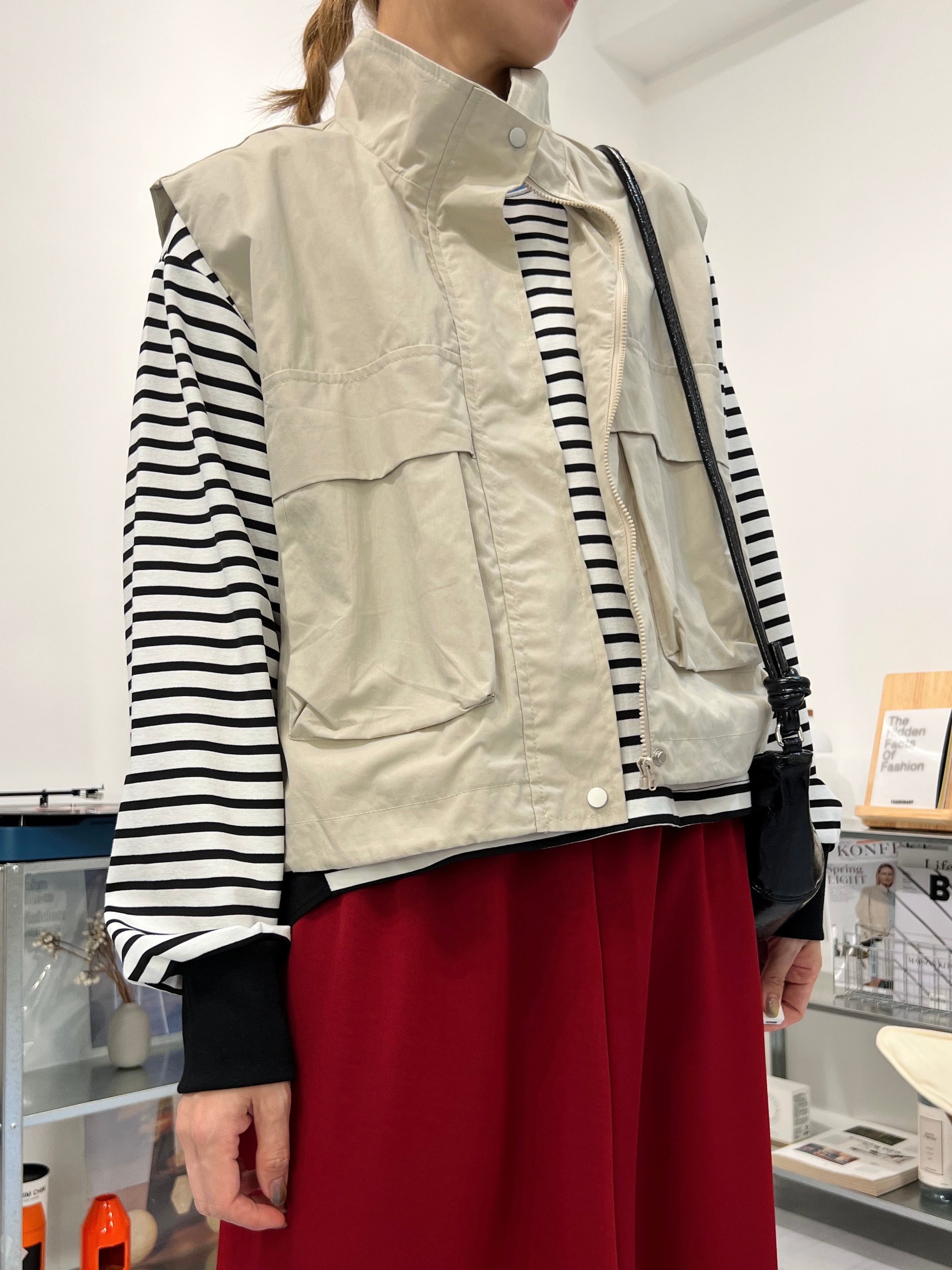 大口袋背心/米白
